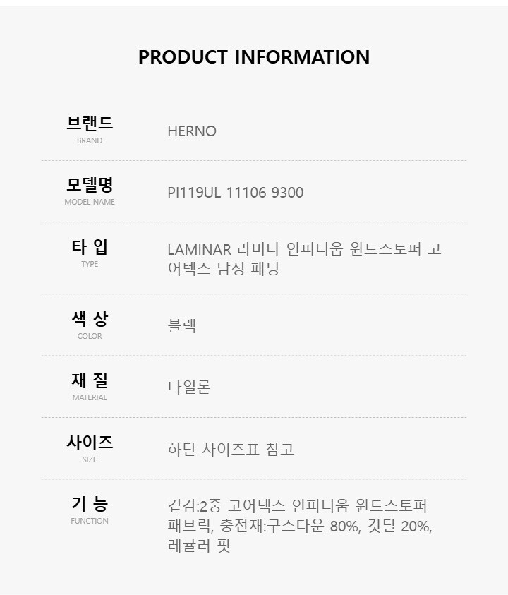 에르노 패딩 PI119UL 11106 9300 라미나 인피니움 윈드스토퍼 고어텍스 구스다운 남성패딩 당일발송