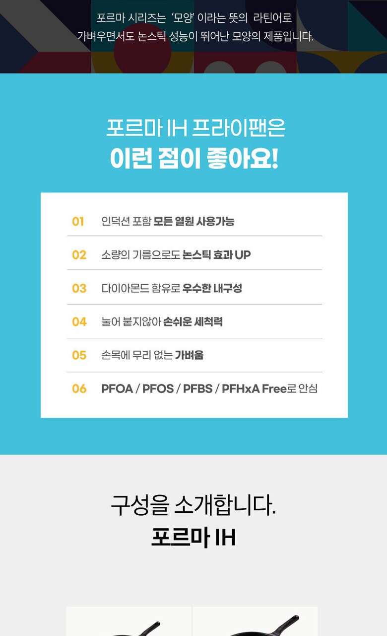 [HC해피콜] 포르마 IH 주물 프라이팬 4종A (20후,28후,28궁,28유리)