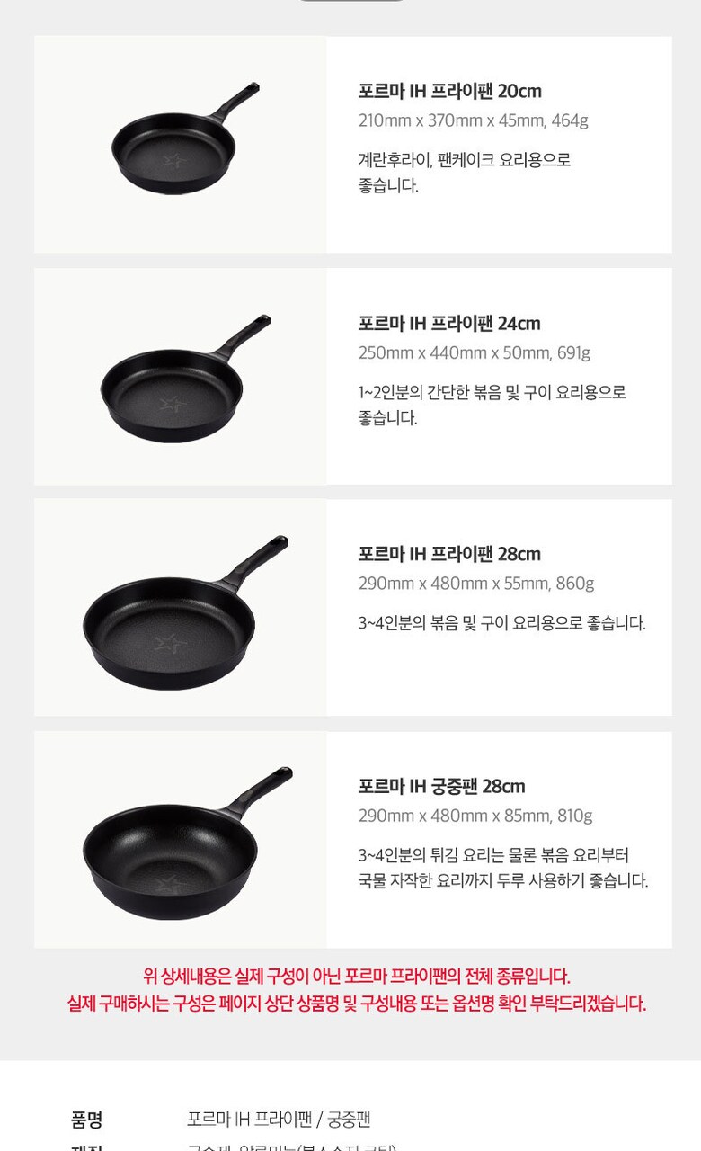 [HC해피콜] 포르마 IH 주물 프라이팬 3종B (20후,24후,28후)