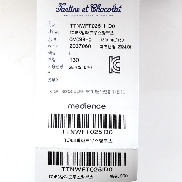 | 10. 취급방법 및 취급시 주의사항, 안전표시 (주의, 경고 등) | 단독세탁, 삶지 마십시오, 기계건조금지, 주의! 작은 부품이 탈락되면 삼킬 수 있음 |