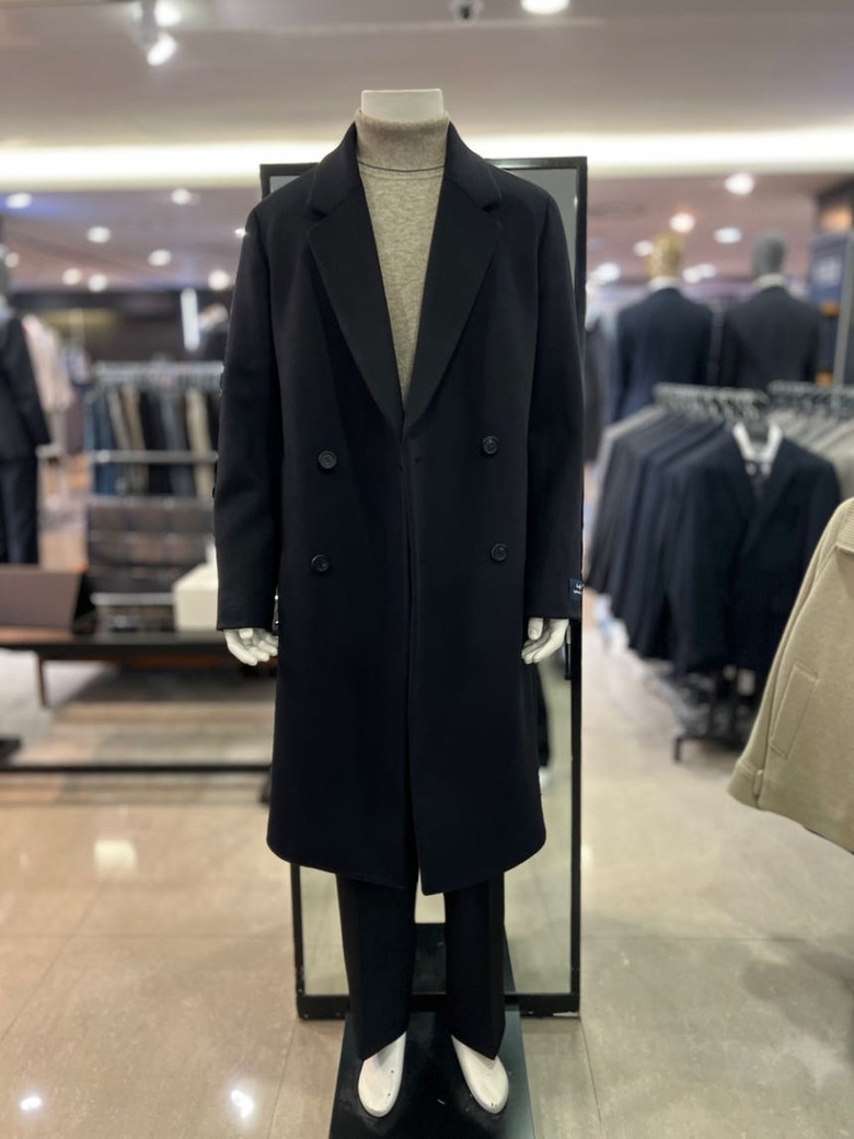 블랙 세미오버핏 더블 코트