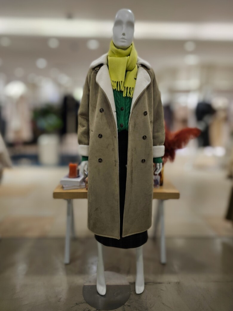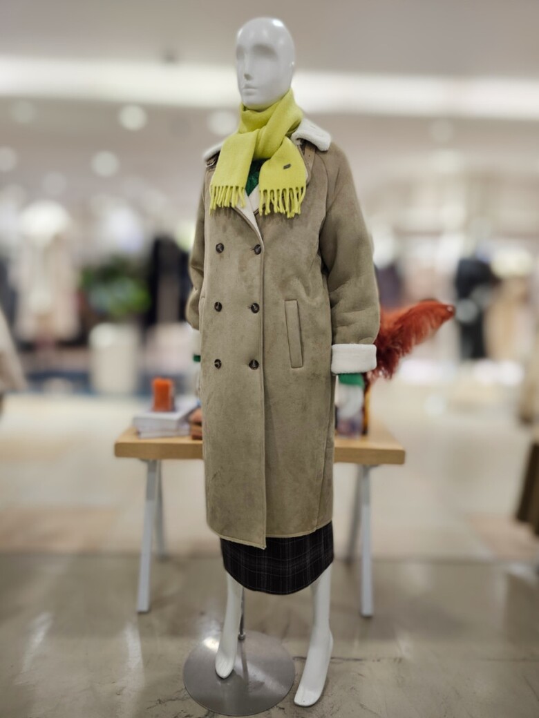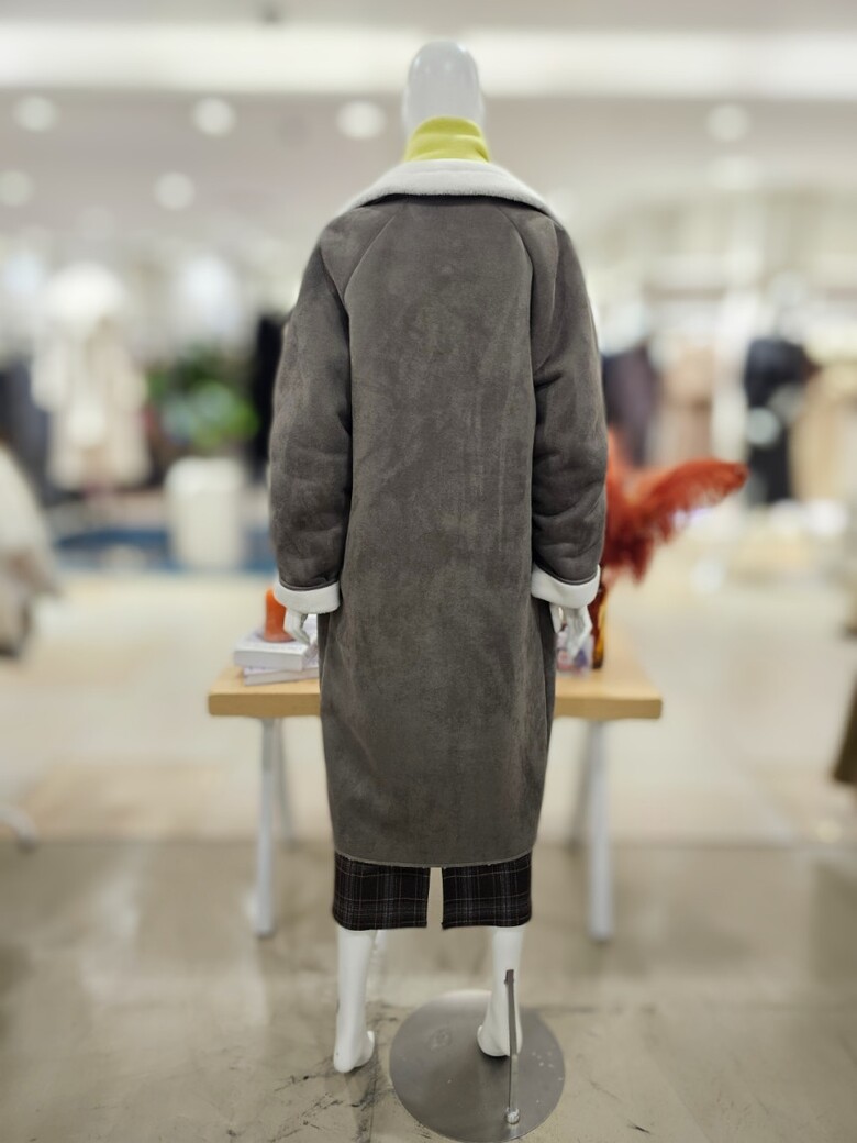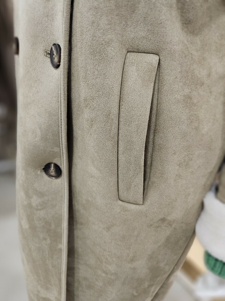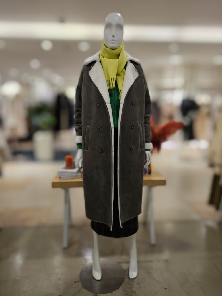 멋스러운 느낌을 안겨드리는 롱 무스탕 코트입니다.