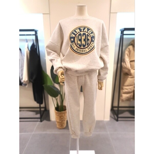 KESTOB05OT_빈티지 프린팅 기모 맨투맨 세트 OT