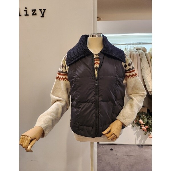 CO9WDW03_니트 카라 덕 다운 패딩조끼