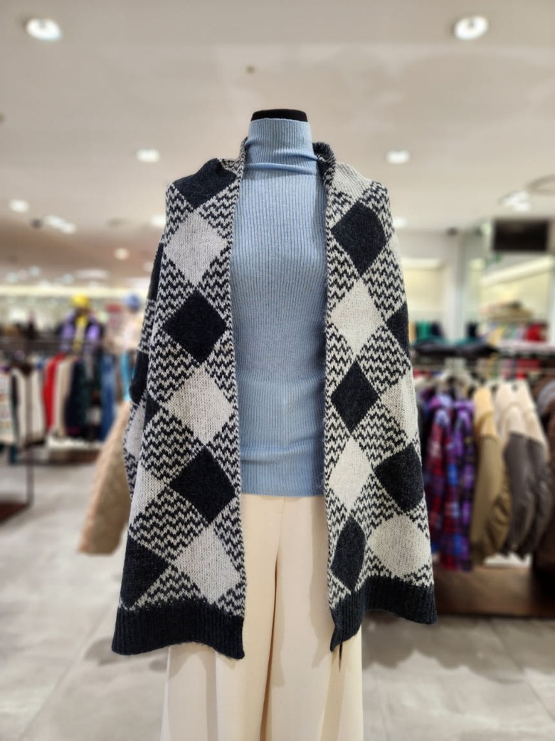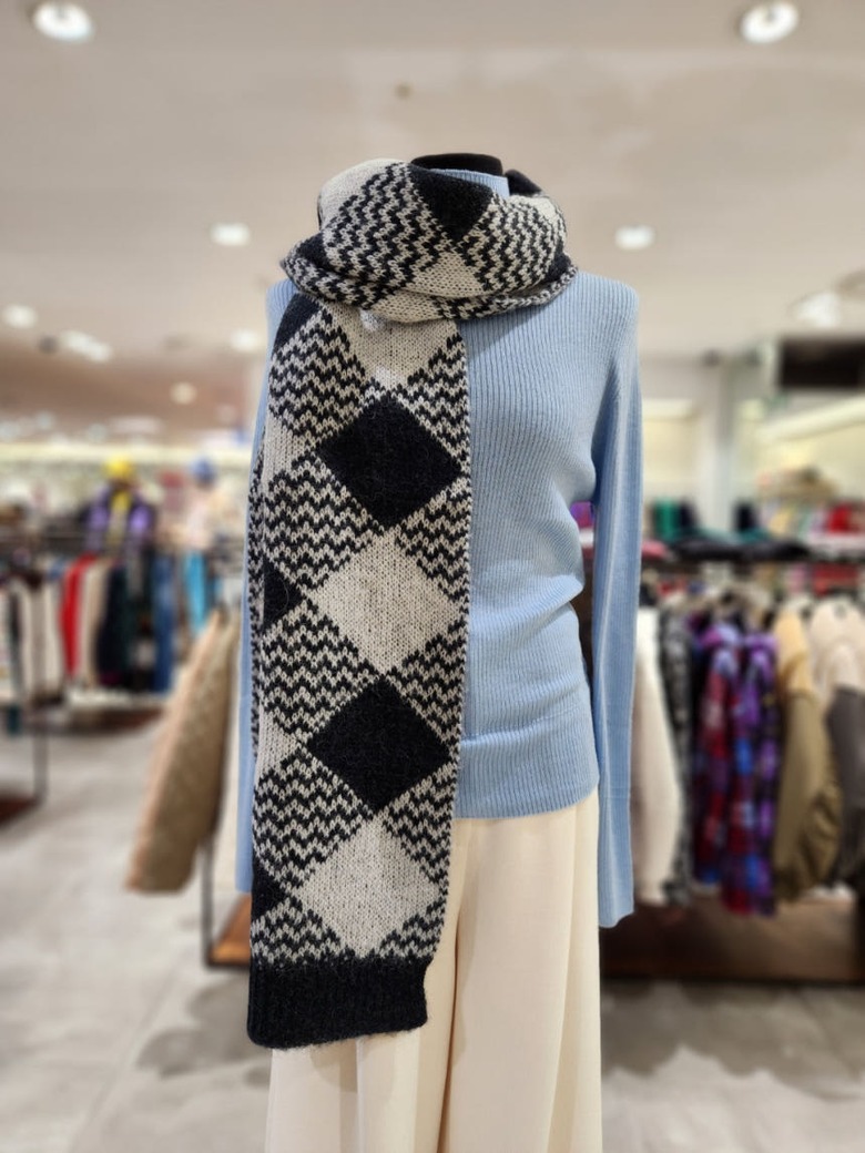 베네통 컬러체크 알파카혼방 머플러 BCMF54361