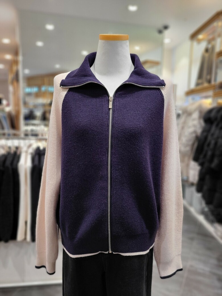 플라스틱아일랜드 배색짚업가디건 PP4KG061
