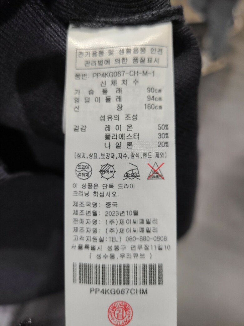 | 1. 제품 소재 (섬유의 조성 또는 혼용률을 백분율로 표시, 기능성인 경우 성적서 또는 허가서) | 레이온 50%, 폴리에스테르 30%, 나일론 20% |