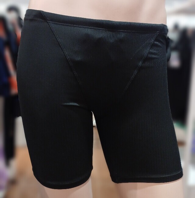 깔끔한 블랙 컬러가 포인트인 남성 3부 수영복입니다.