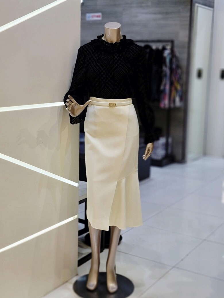 언밸런스 슬릿 훌 디자인으로 페미닌한 무드의