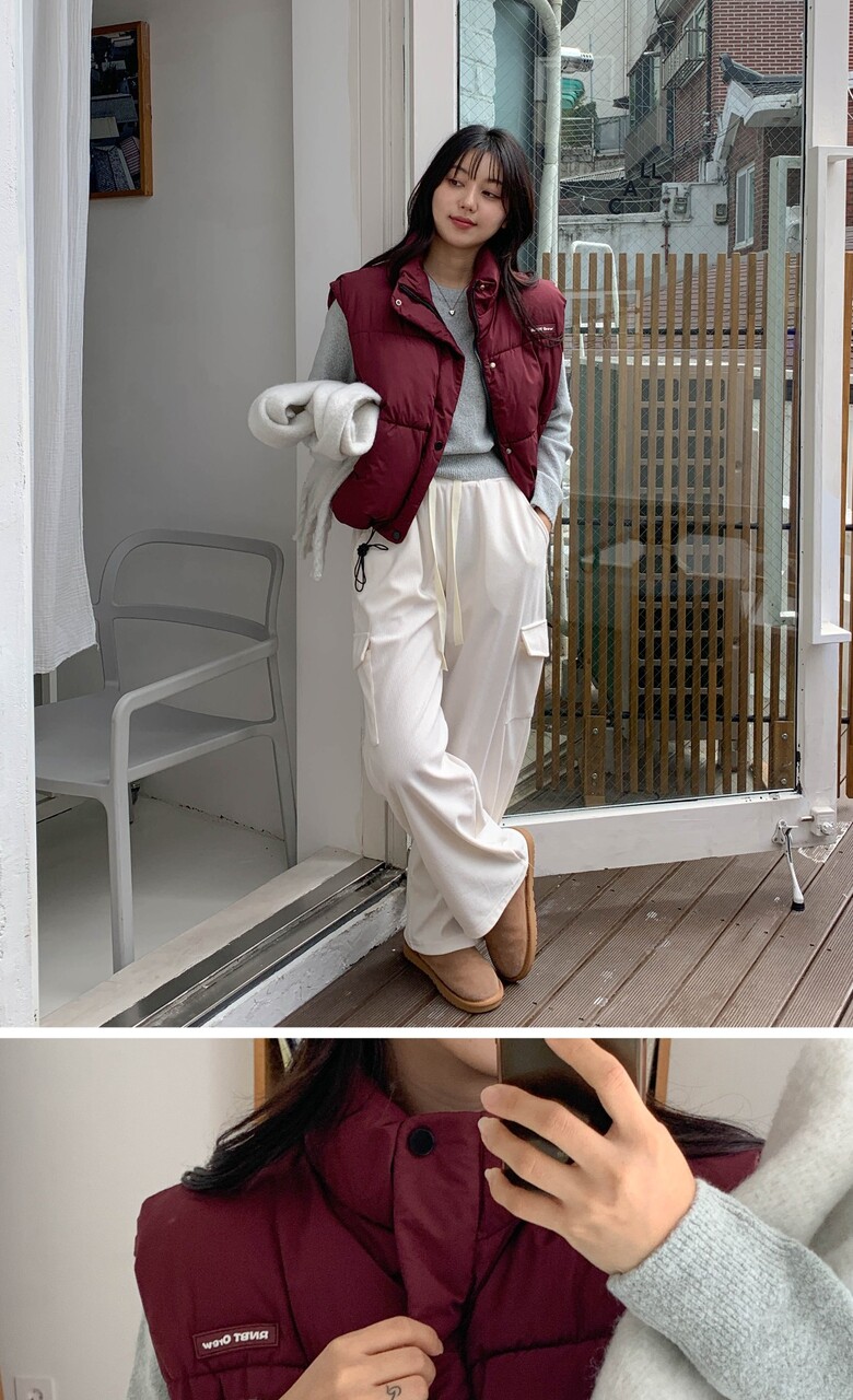 네쥬 여성 가을 레터링 스트링 데일리 귀여운 패딩 조끼