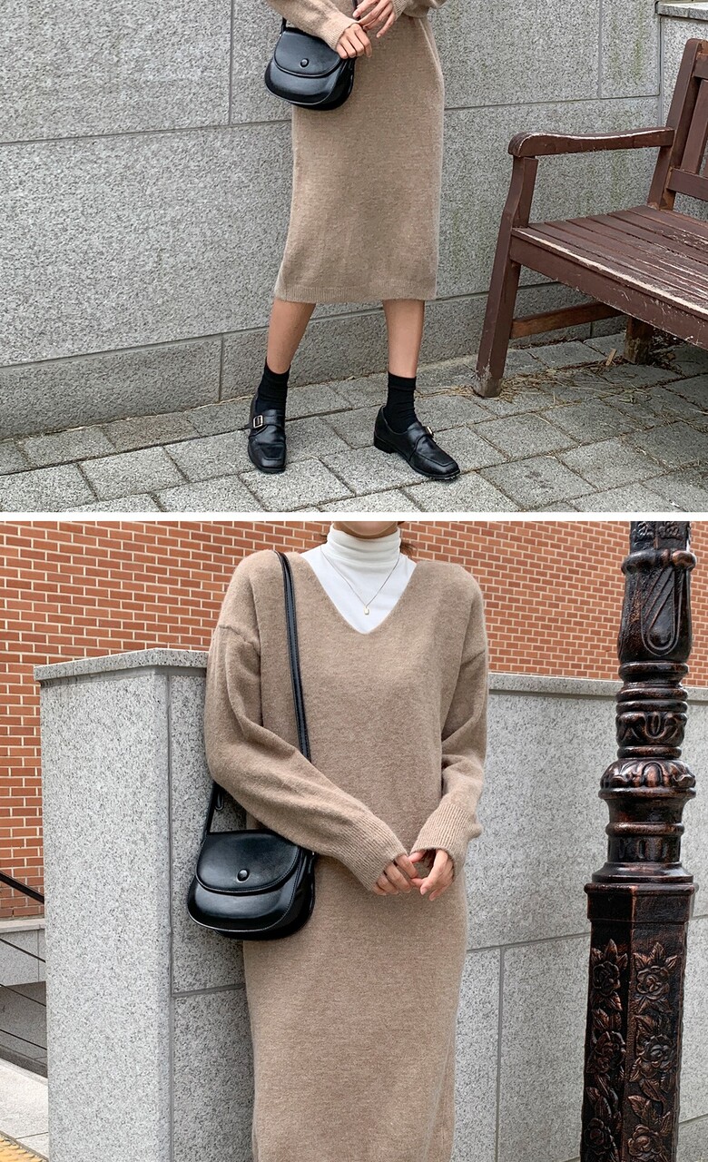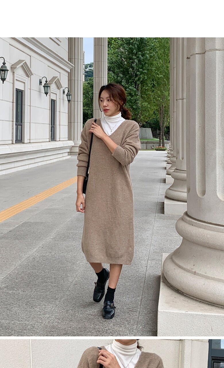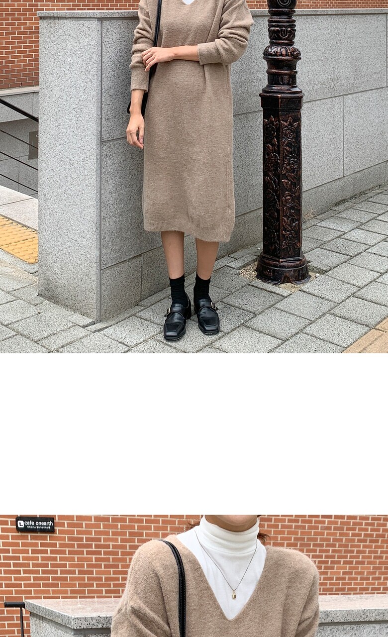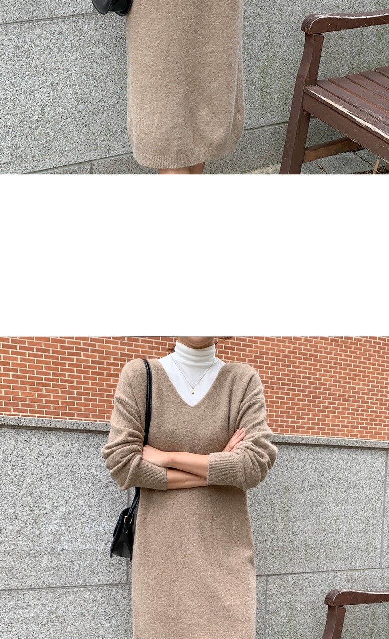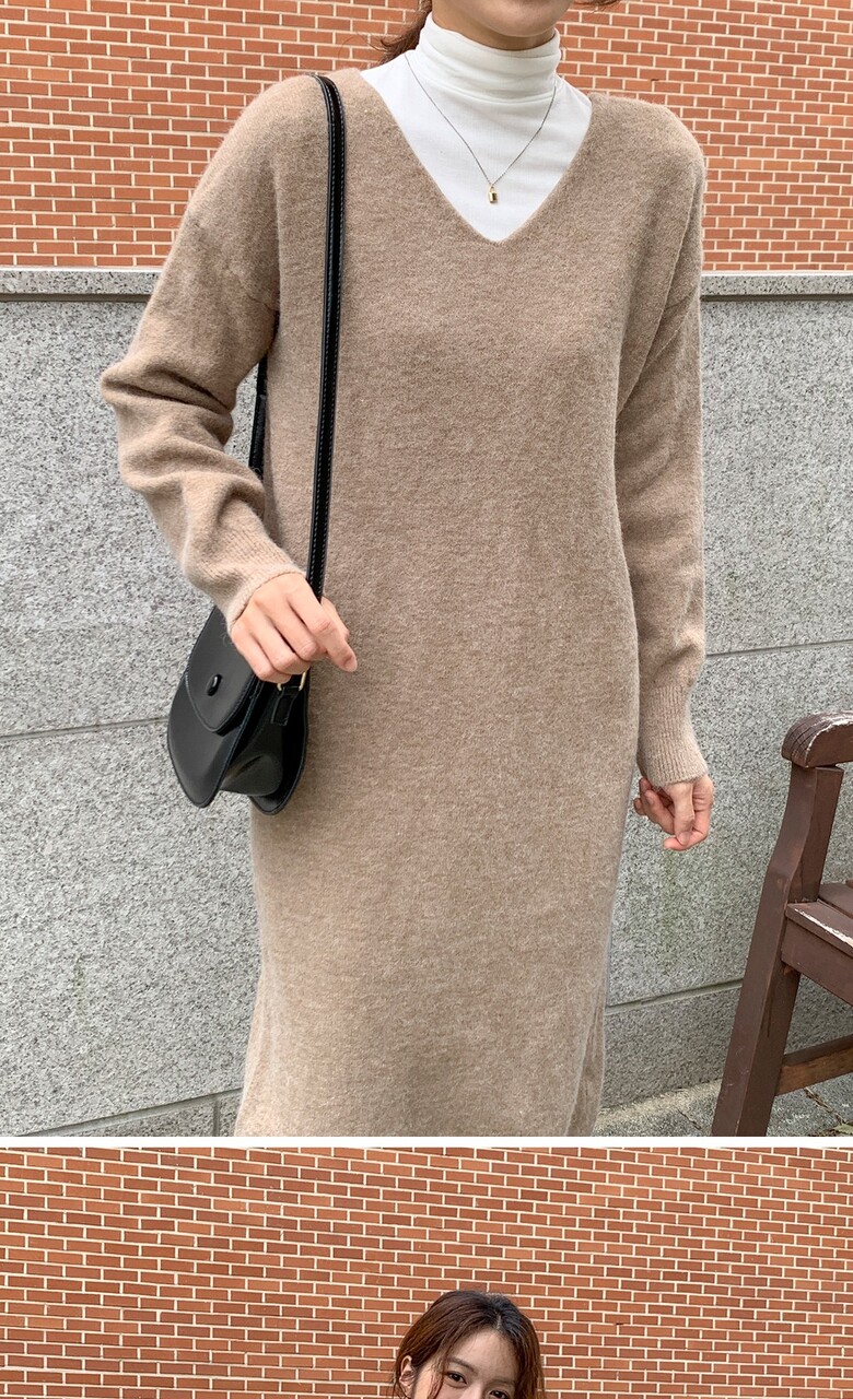 네쥬 여성 가을 브이넥 기본 무지 데일리 긴팔 롱 원피스