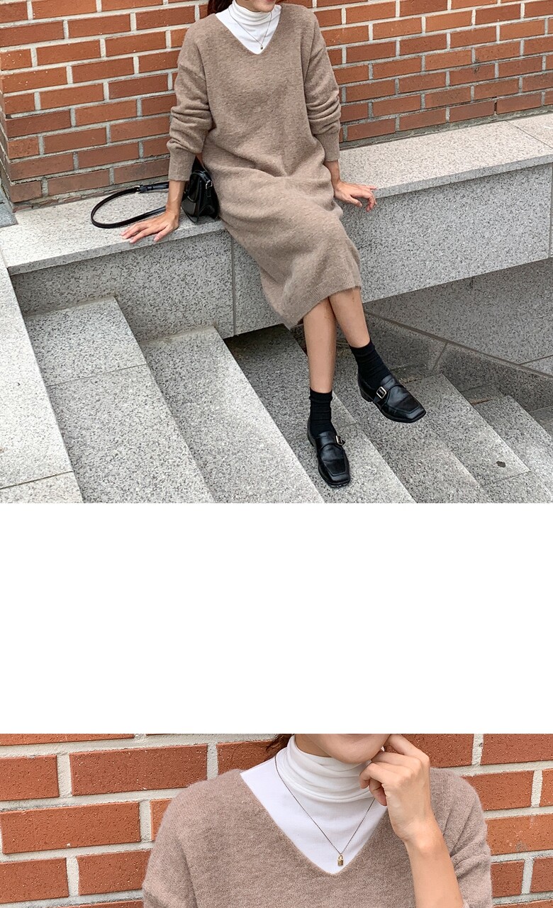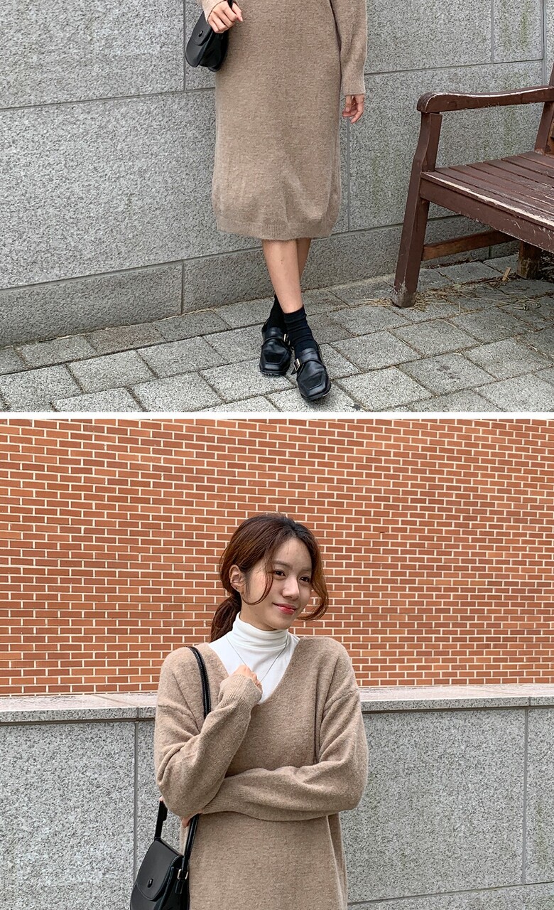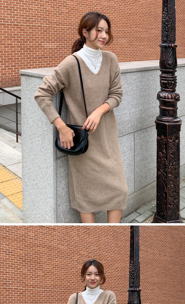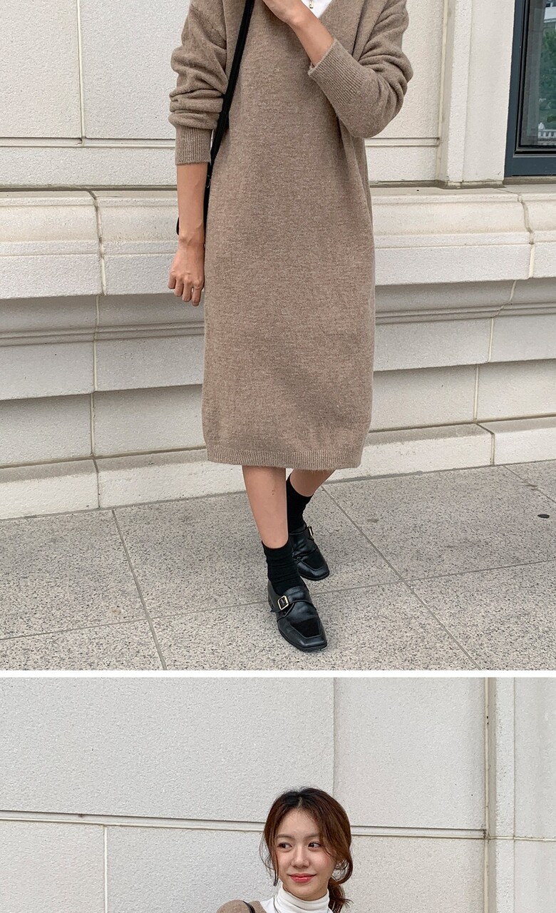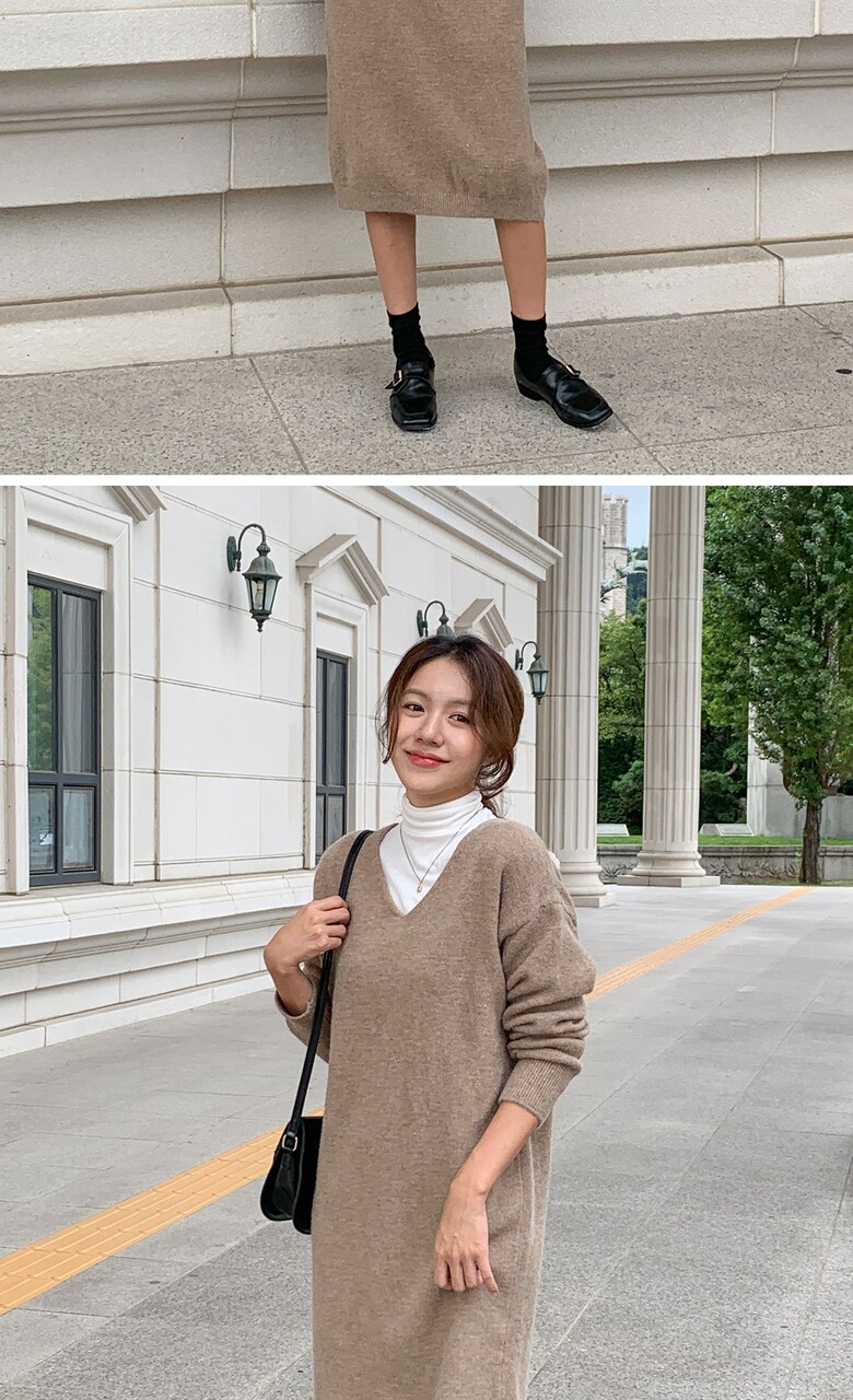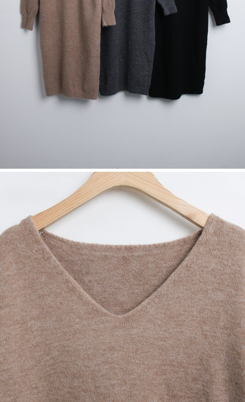 네쥬 여성 가을 브이넥 기본 무지 데일리 긴팔 롱 원피스