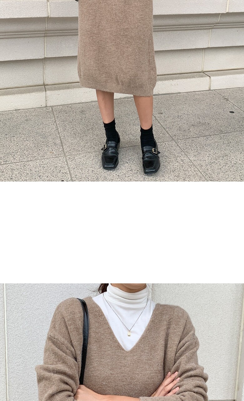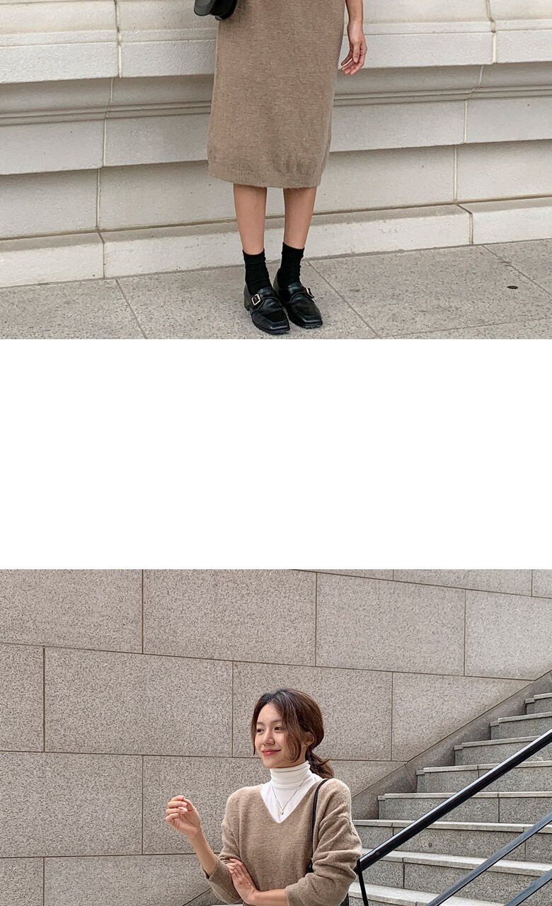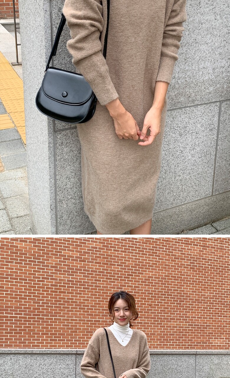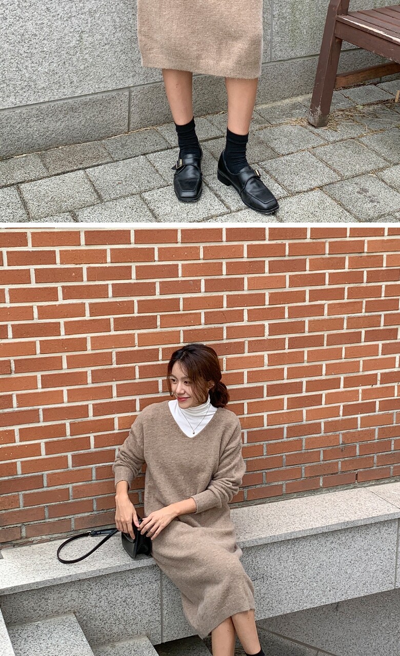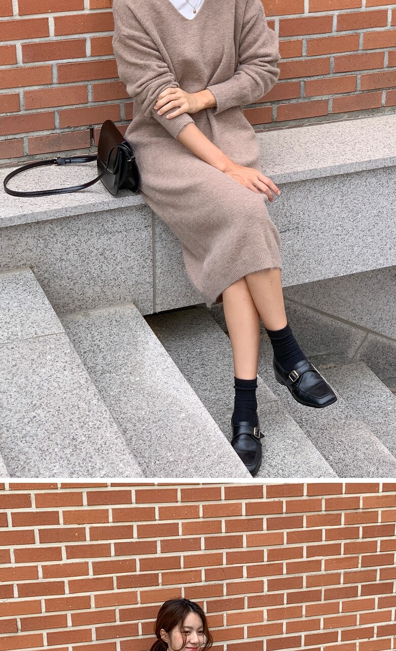 네쥬 여성 가을 브이넥 기본 무지 데일리 긴팔 롱 원피스