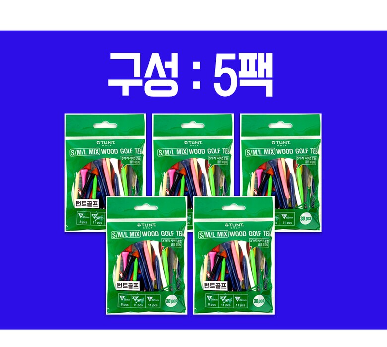 SML 컬러 혼합 골프나무티 5팩총150개입