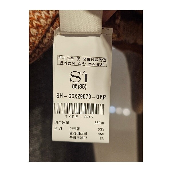 | 1. 제품 소재 (섬유의 조성 또는 혼용률을 백분율로 표시, 기능성인 경우 성적서 또는 허가서) | 아크릴53%폴리에스터45% |