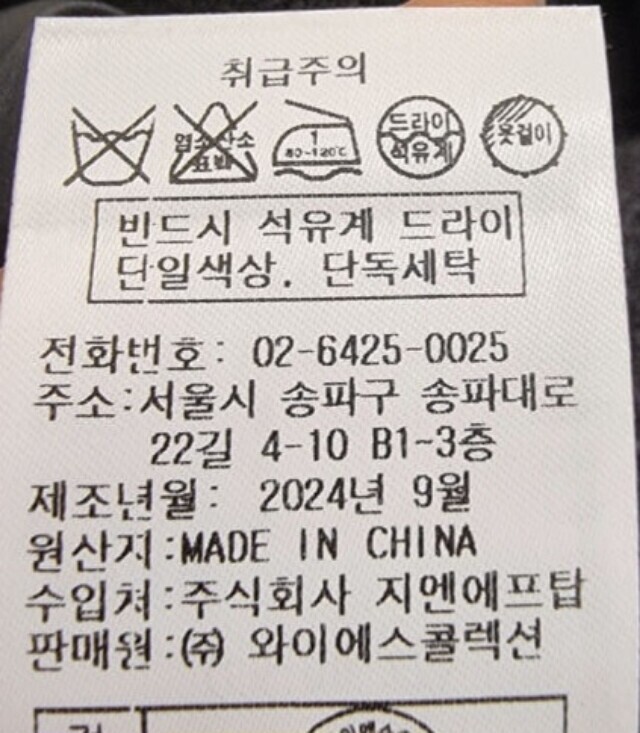 | 6. 세탁방법 및 취급시 주의사항 | 상품상세참조 |