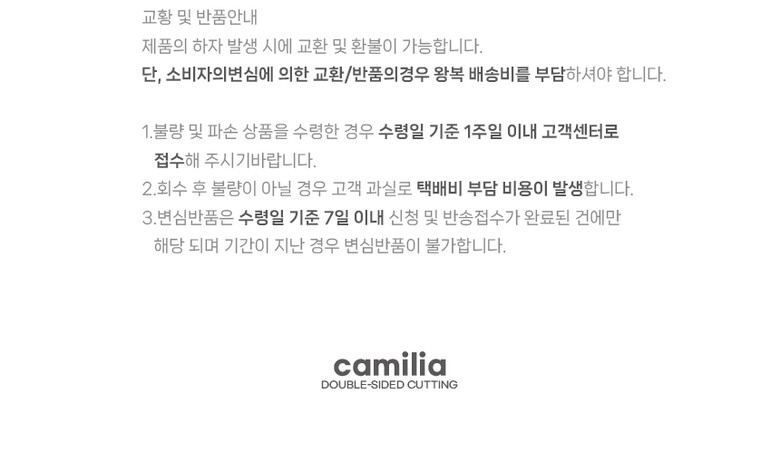 • 표시/광고와 상이, 제품 하자의 경우 수령 후 3개월 이내, 또는 그 사실을 안 날로부터 30일 이내 교환/반품 가능합니다.
