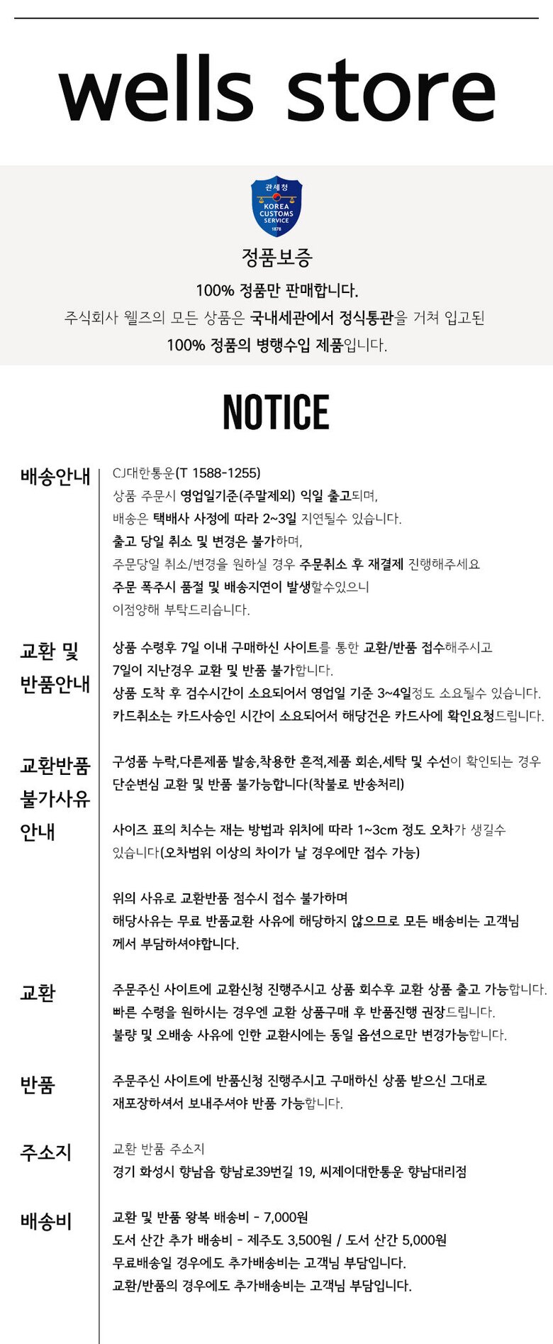 상품불량에 의한 반품, A/S, 품질보증 및 피해보상 등에 관한 사항은 소비자 분쟁해결기준(공정거래위원회 고시) 구매자가 미성년자인 경우에는 상품 구입시 법정대리인이 동의하지 아니하면 미성년자 본인 또는 법정대리인이 구매취소 할 수 있습니다. |
