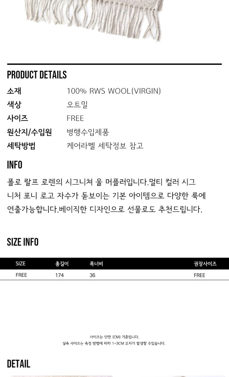폴로 랄프 로렌 시그니처 버진 울 머플러 PC1047236 오트밀