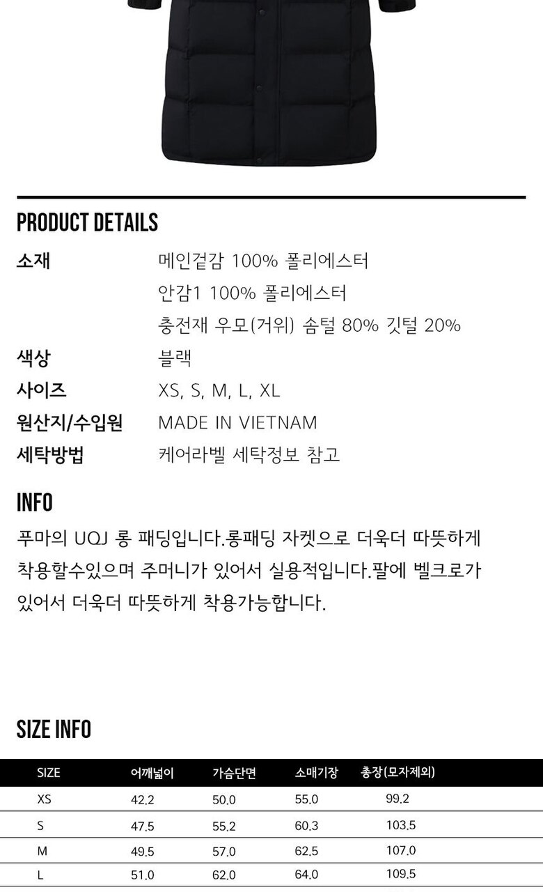 푸마 패딩 UQJ 롱 다운 자켓 933541-01