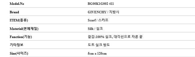 지방시 BG00K1G002 411 (GW5120SS261) 도트 실크 방도 스카프 목도리