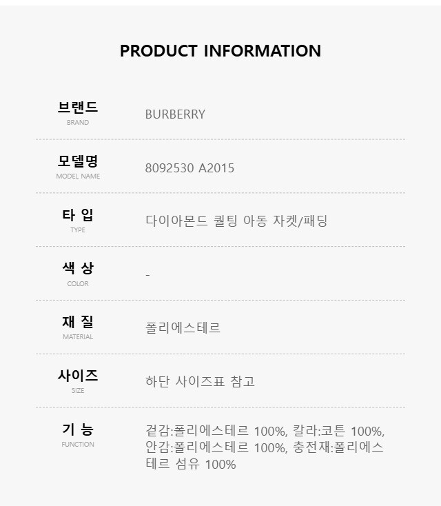버버리 8092530 A2015 다이아몬드 퀄팅 아동 자켓