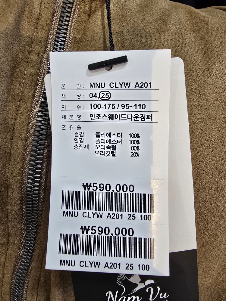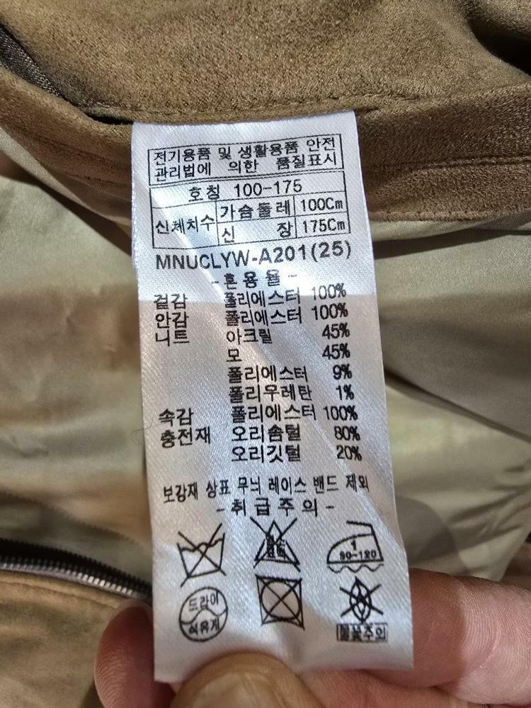 겉감 폴리에스터100% / 충전재 오리솜털80% 깃털20%