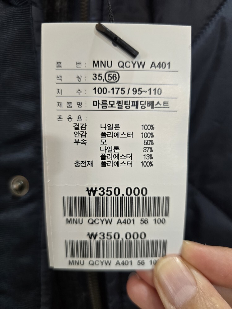 겉감 나일론100% 충전재 : 폴리에스터 100%