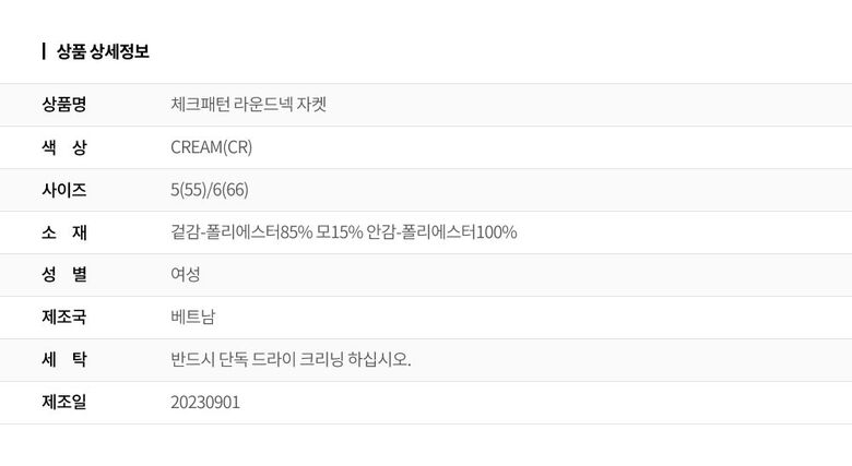 | 6. 세탁방법 및 취급시 주의사항 | 상세페이지 참조 |
