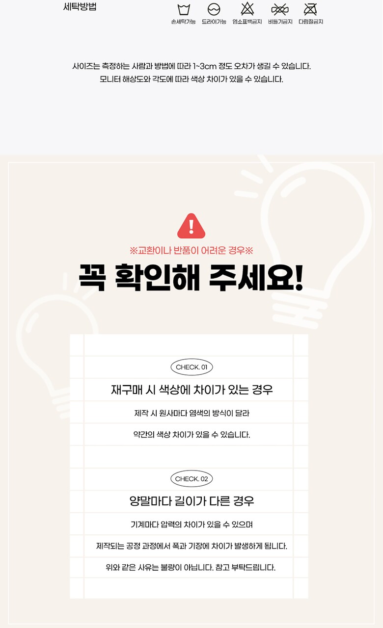 6. 취급시 주의사항 | 중성세제를 사용하시고 락스등의 표백제 사용을 금합니다. |