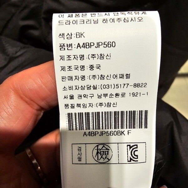 제조자 : (주)참신어패럴