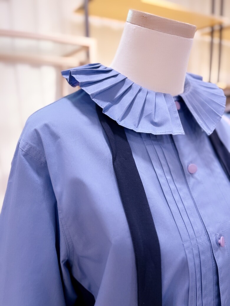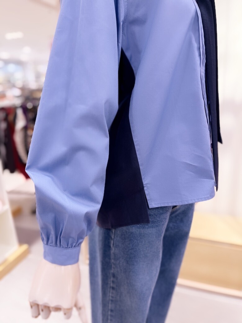 SH1SHF040_플리츠 핀턱 단작 투톤 블라우스