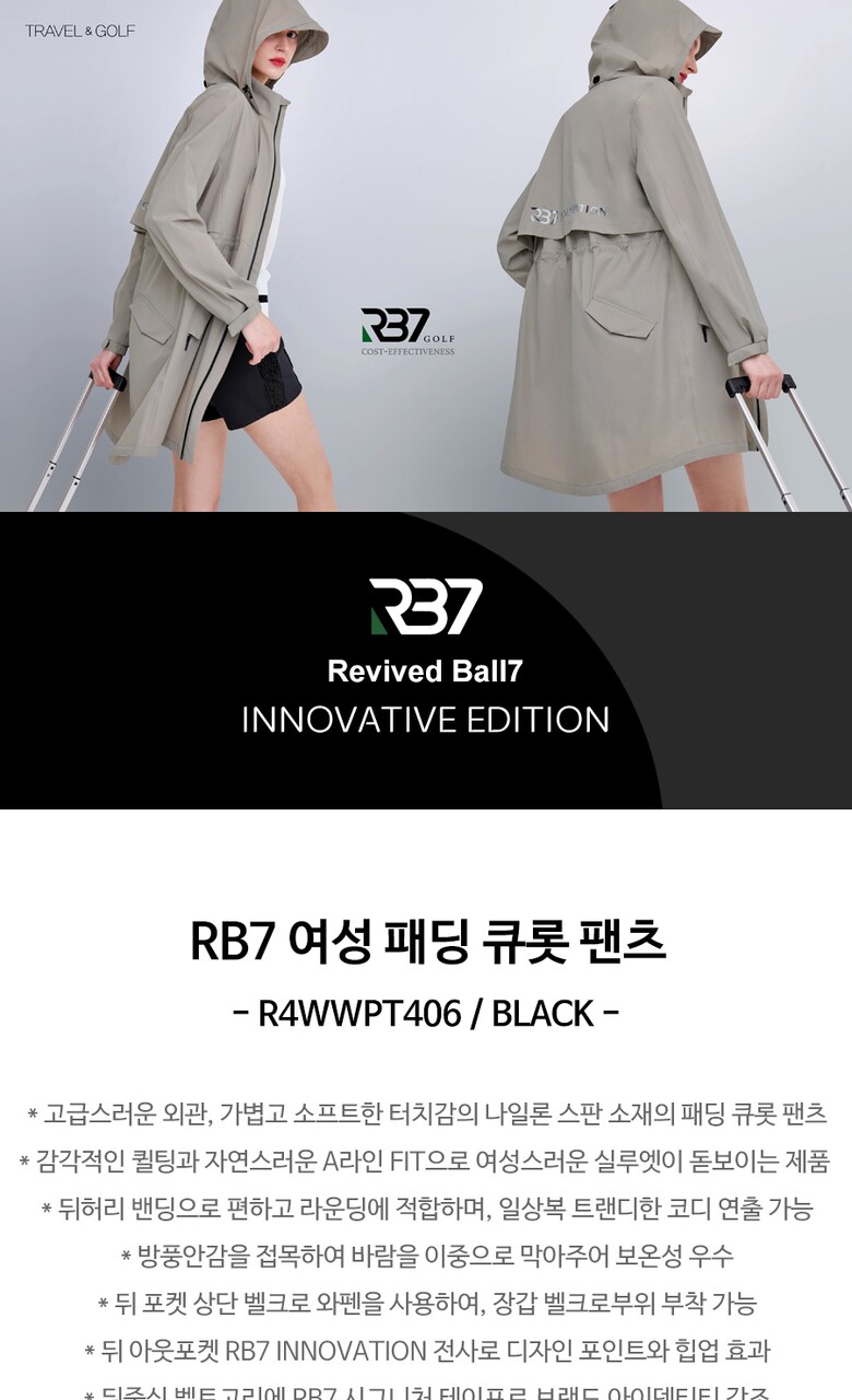 [RB7] 여성 퀄팅 방풍 패딩 골프반바지 R4WWPT406