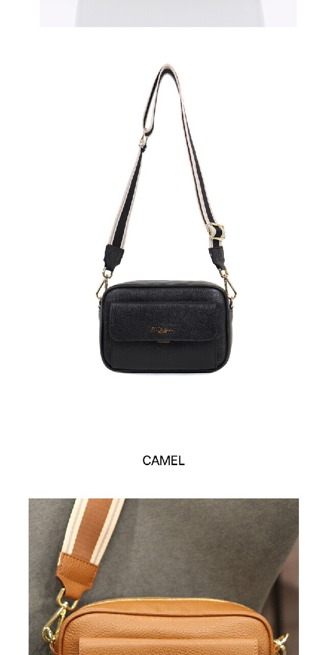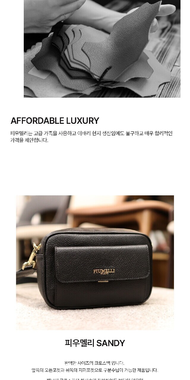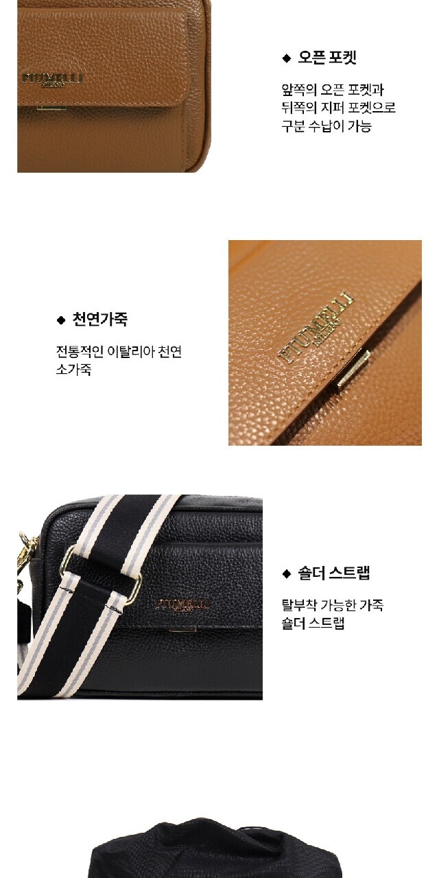 완벽한 사이즈의 크로스백 입니다. 앞쪽의 오픈포켓과 뒤쪽의 지퍼포켓으로 구분수납이 가능한 제품입니다.