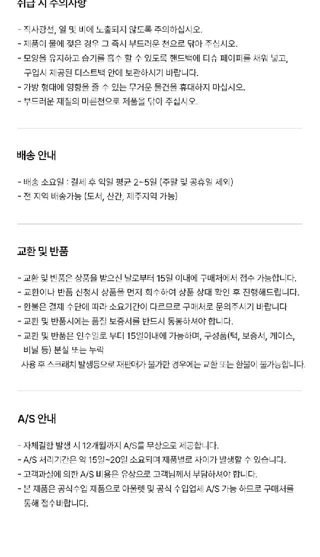 | 7. 취급시 주의사항 | 상품상세참조 |