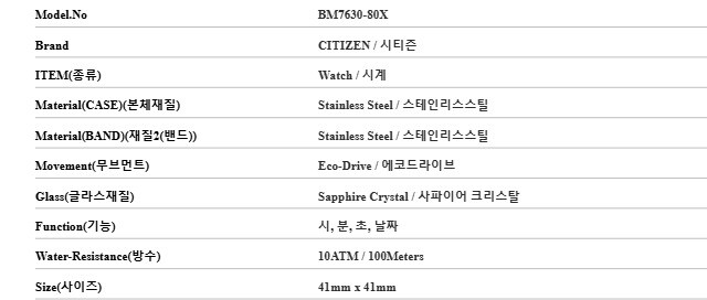 | 7. 주요 사양 | 스테인리스스틸 시계 에코드라이브 |