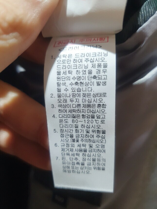 | 6. 세탁방법 및 취급시 주의사항 | 드라이크리닝 |