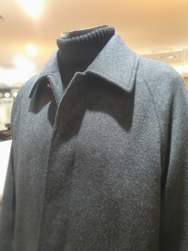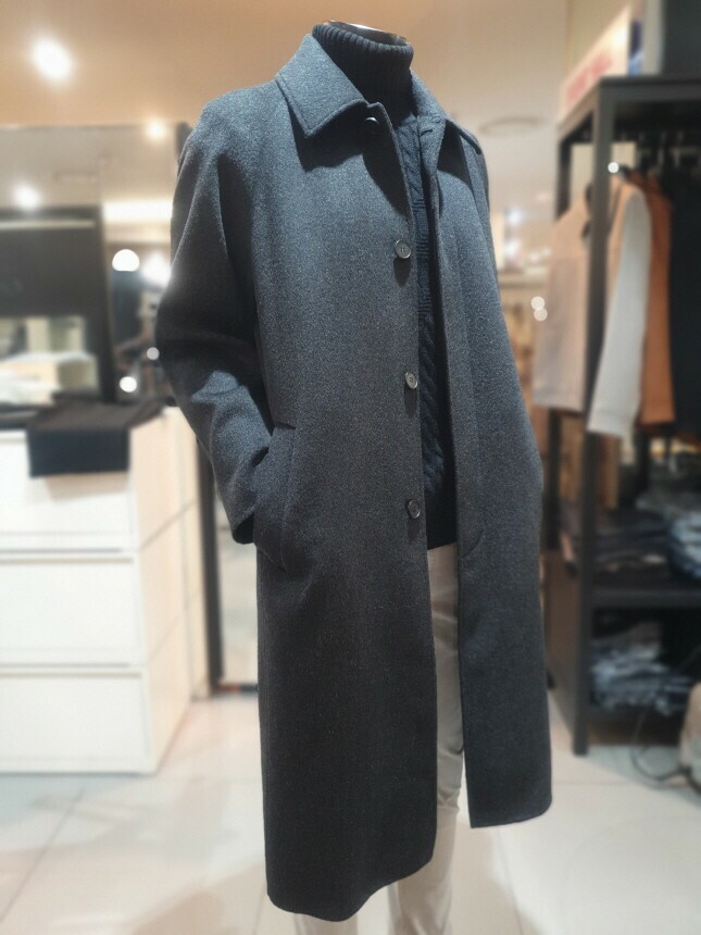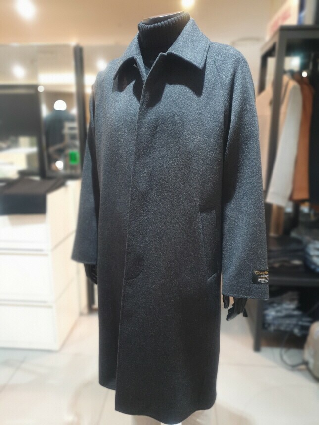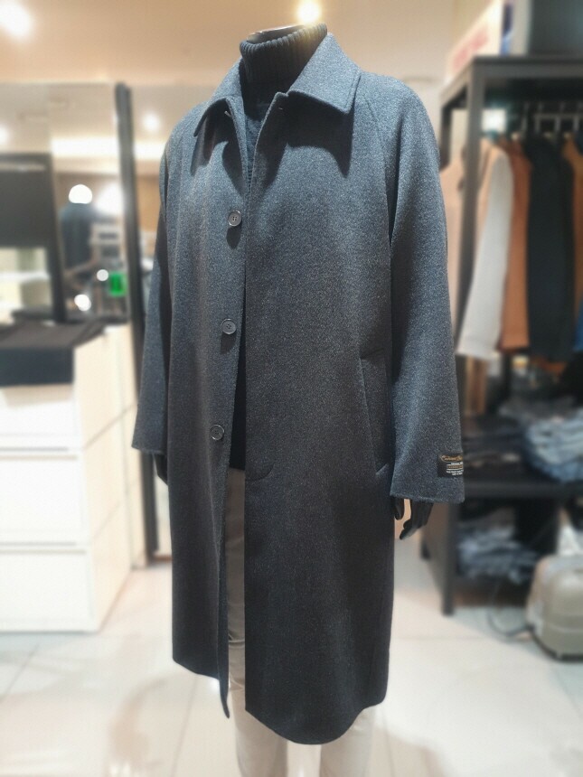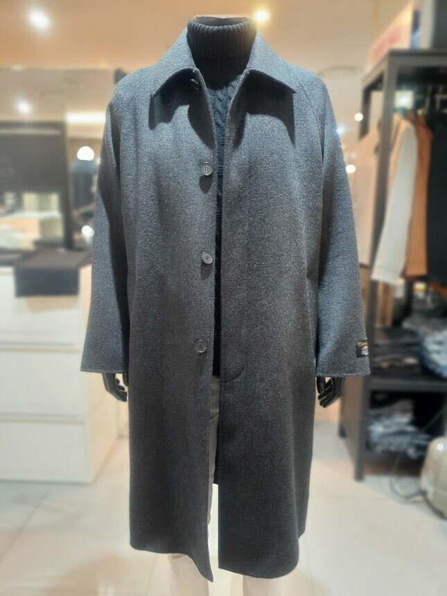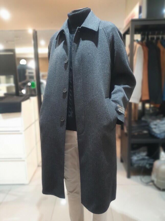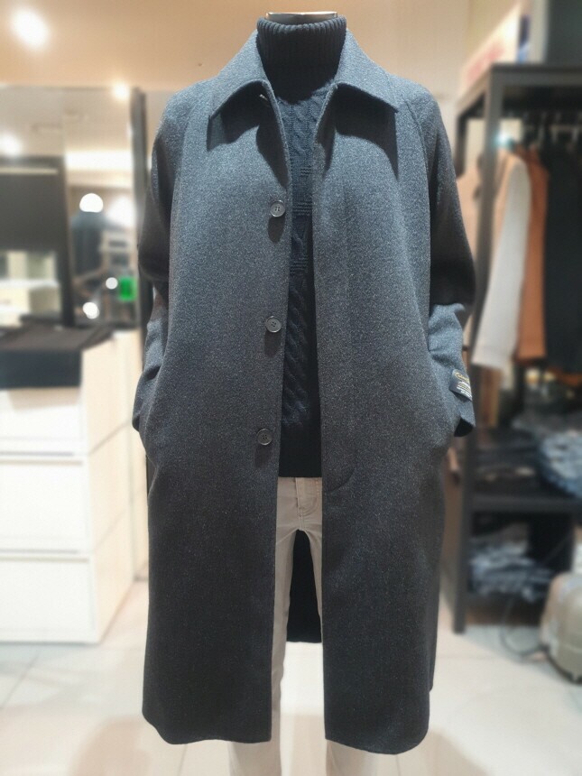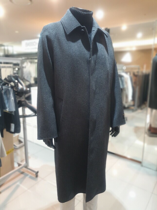 [바쏘옴므] 24년 F/W 차콜 캐시미어 모 30% 압축핸드메이드 오버핏 발마칸 롱코트