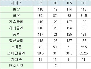 | 3. 치수 | 95,100,105,110 |
