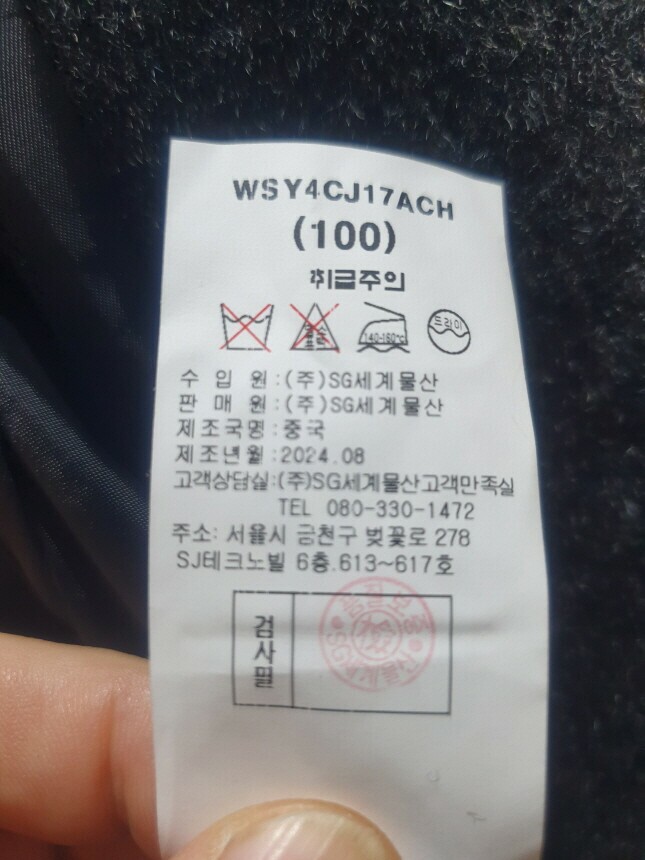 안감 : 폴리에스터 100%