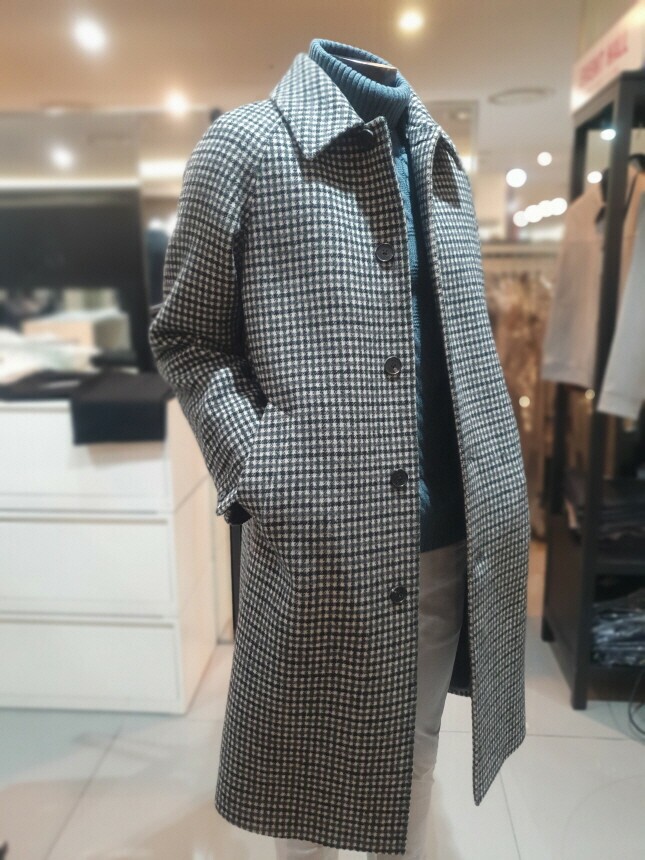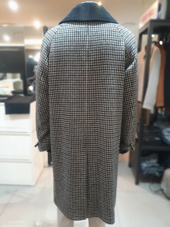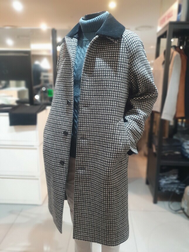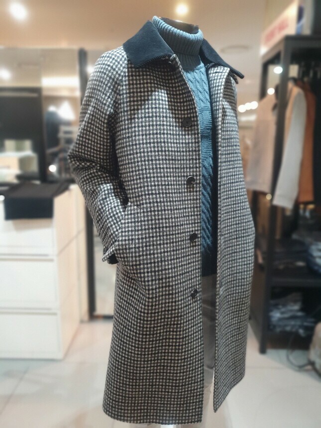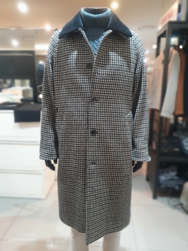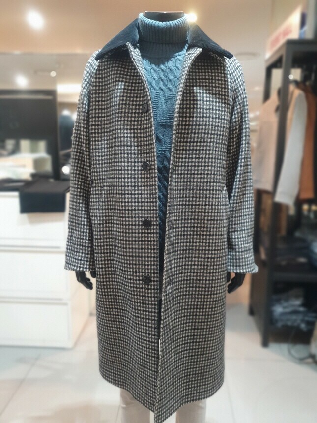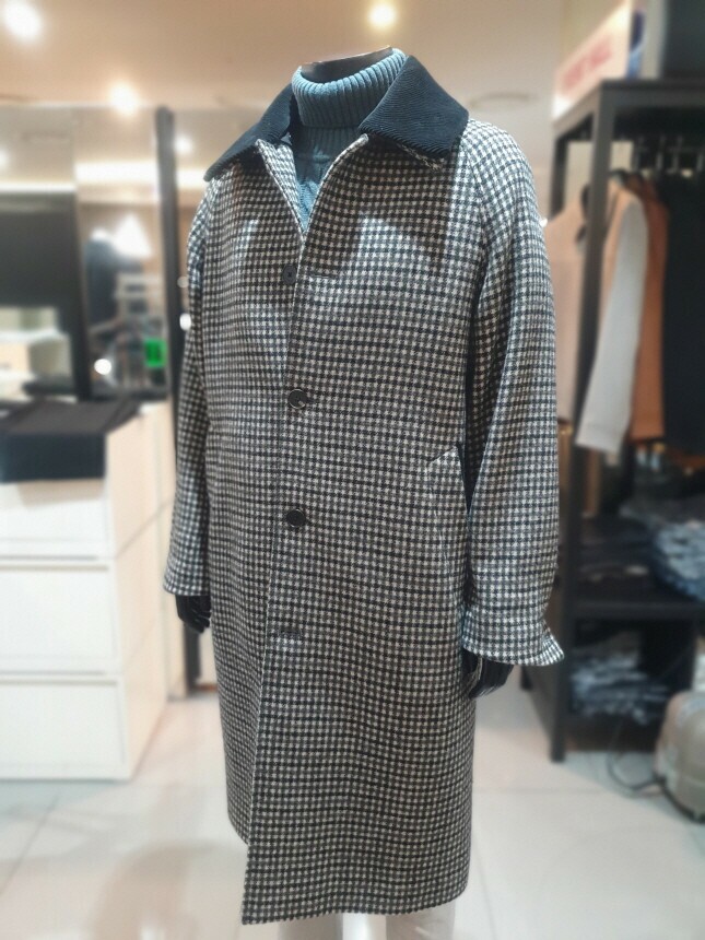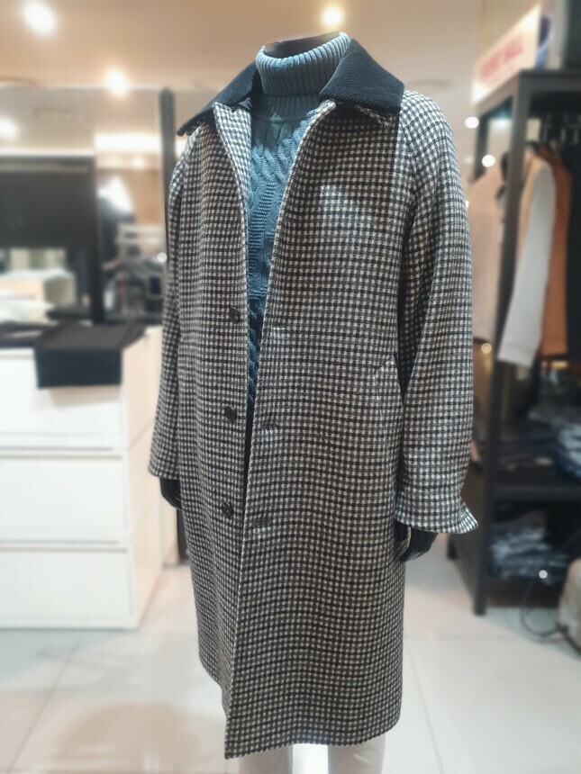 [바쏘옴므] F/W 라펠 탈착 하운드투스체크 오버핏 발마칸 롱코트
