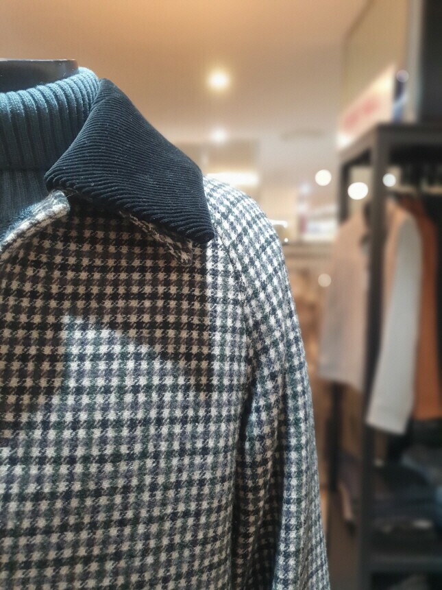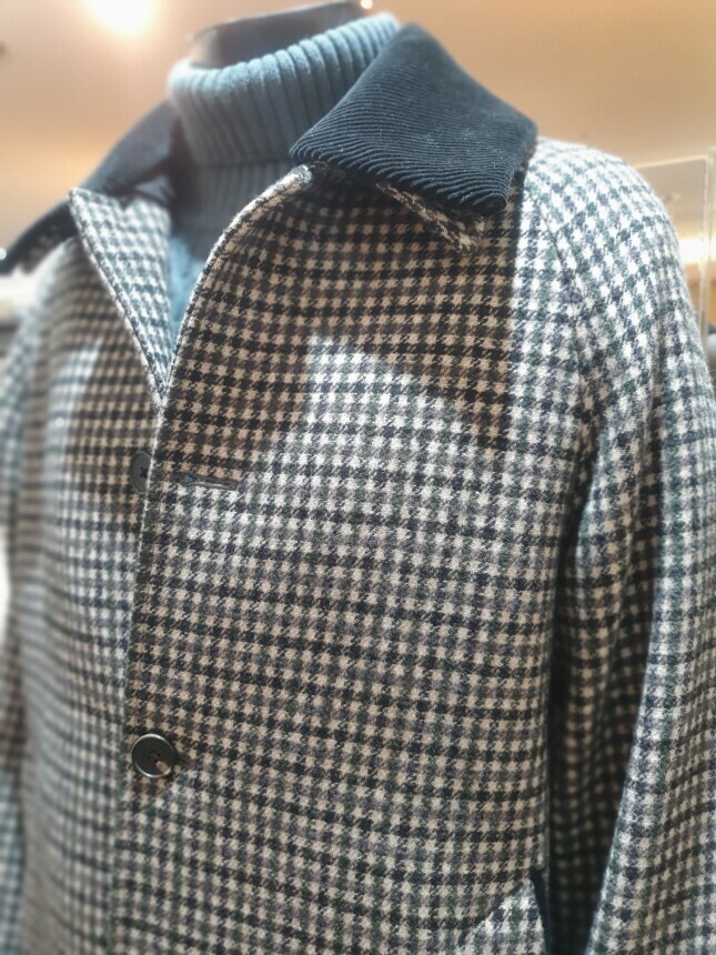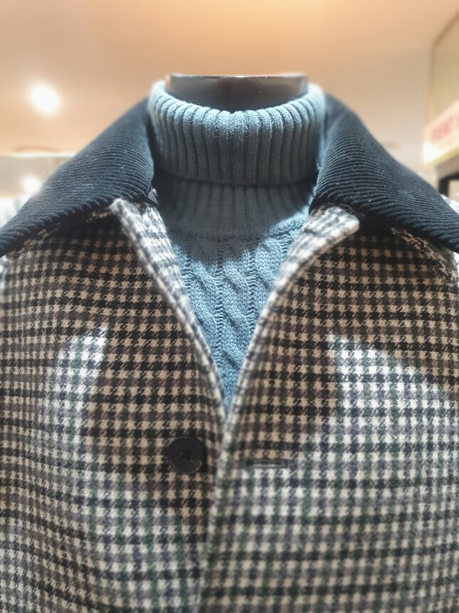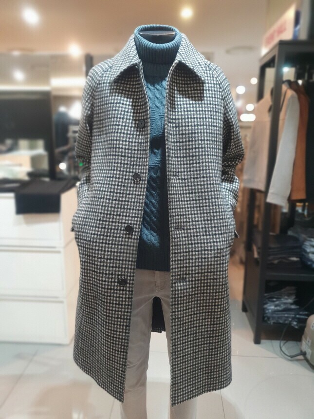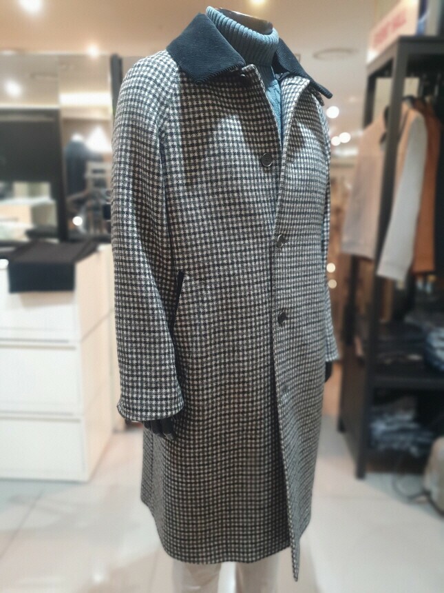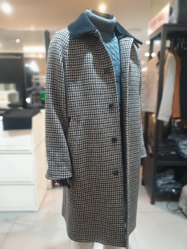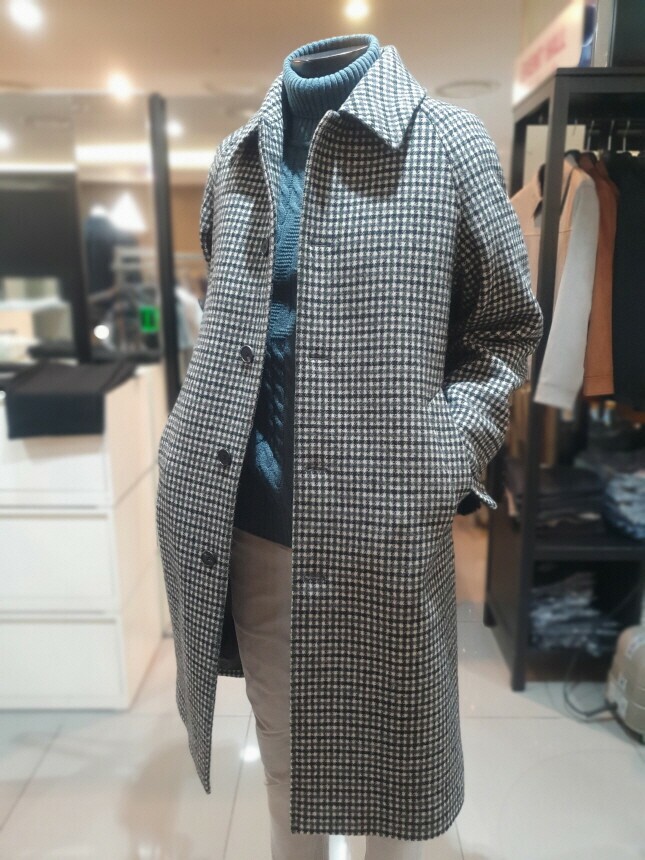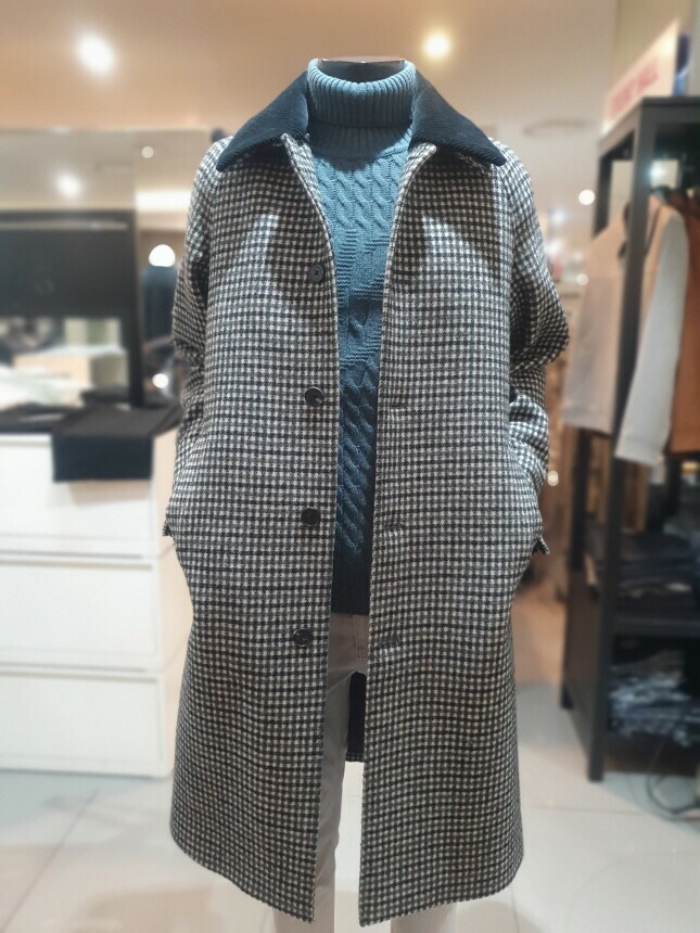 [바쏘옴므] F/W 라펠 탈착 하운드투스체크 오버핏 발마칸 롱코트