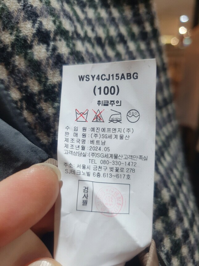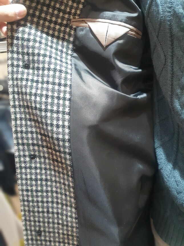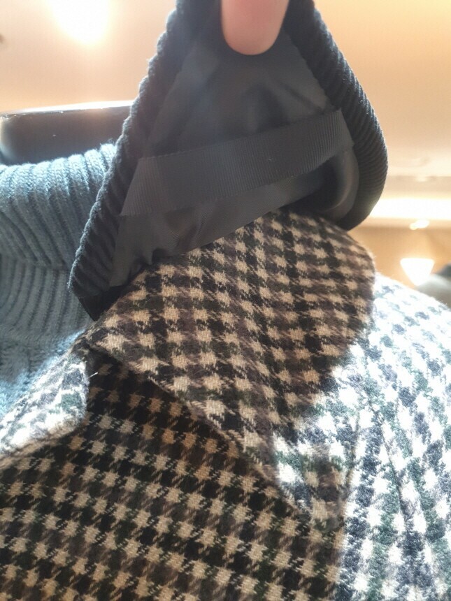 | 1. 제품 소재 (섬유의 조성 또는 혼용률을 백분율로 표시, 기능성인 경우 성적서 또는 허가서) | 겉감 : 모 83% , 나일론 15% , 폴리에스터 2% 안감1 : 폴리에스터 10 |