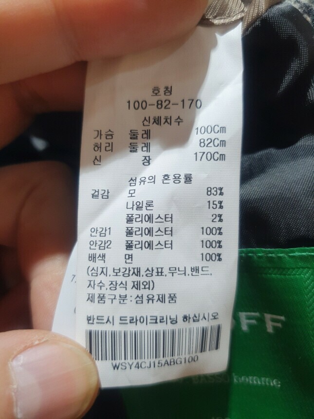 겉감 : 모 83% , 나일론 15% , 폴리에스터 2%