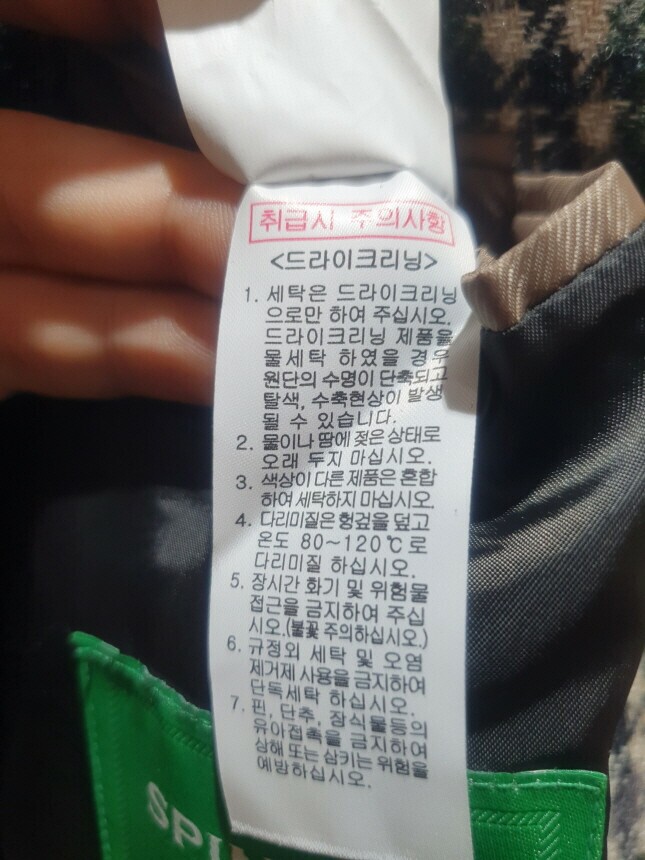 | 6. 세탁방법 및 취급시 주의사항 | 드라이크리닝 |