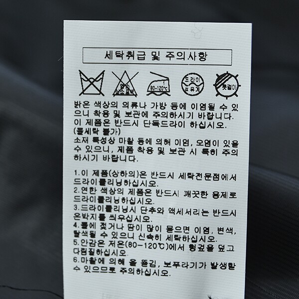 세탁방법 및 취급시 주의사항 : 드라이크리닝