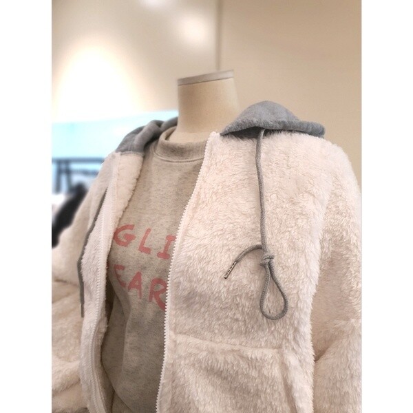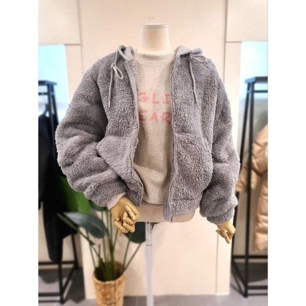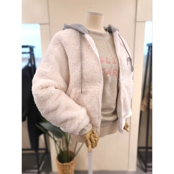 빳빳하지 않고 부드러운 촉감의 기분 좋은 뽀글 후드 집업입니다.