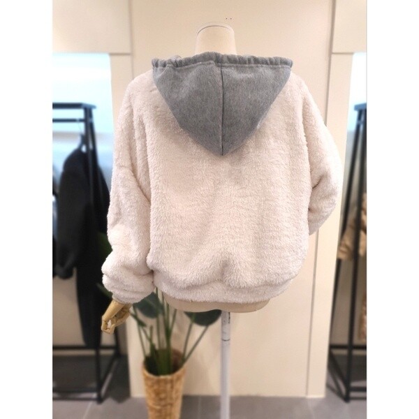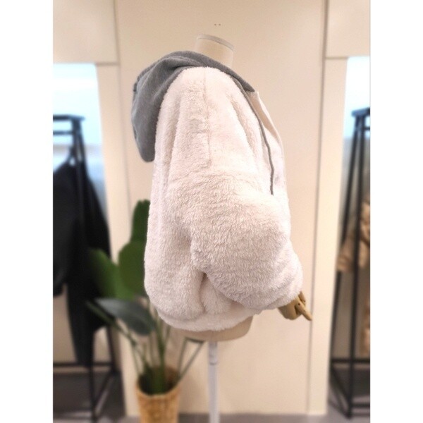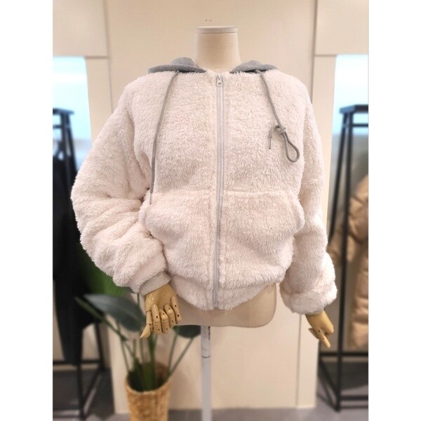 KEJPOC02IV_뽀글 후드 집업 점퍼 아이보리
