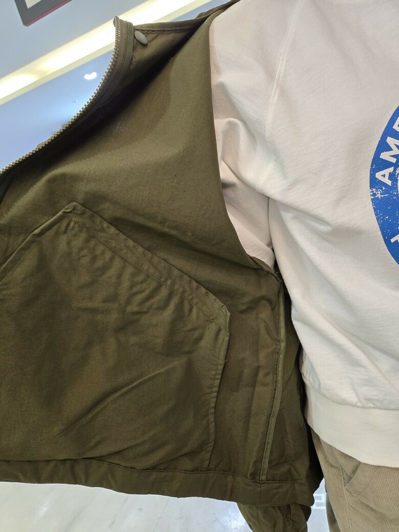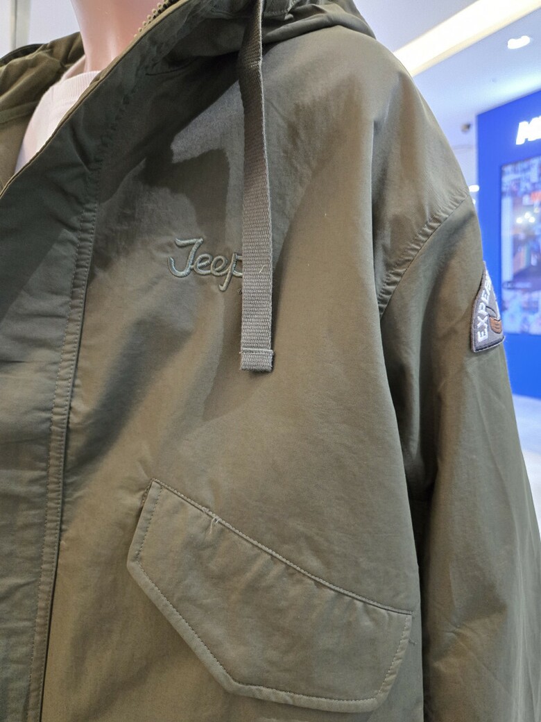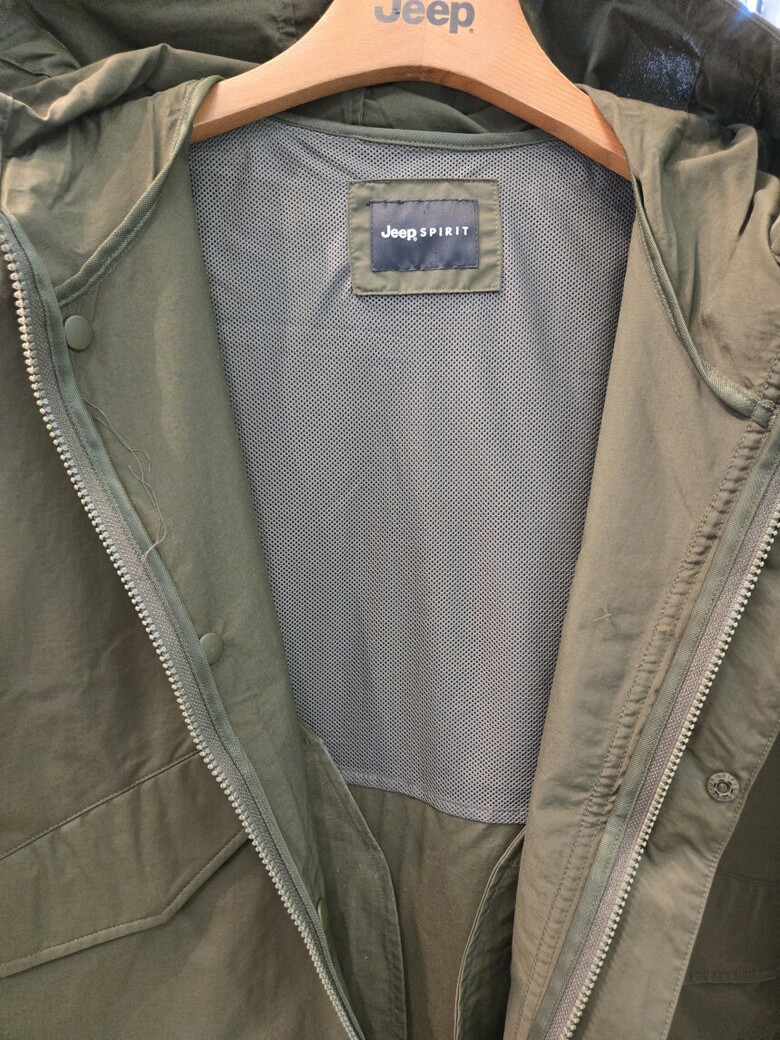 앞가슴에 Jeep. 흘림체 직자수와 소매 와펜으로 포인트를 주었습니다.
