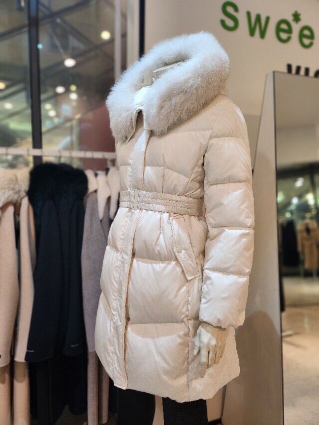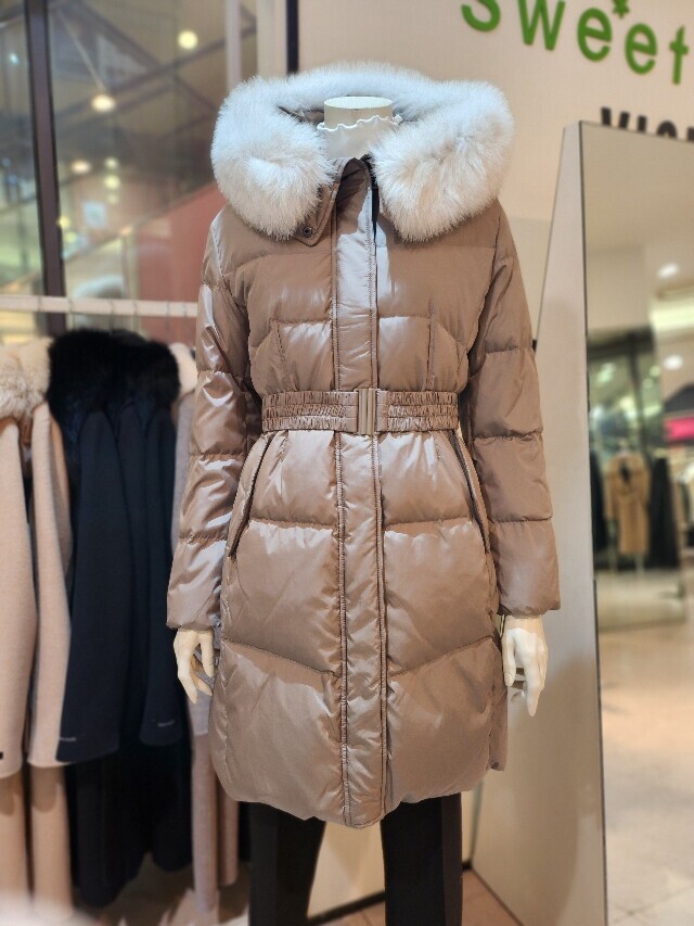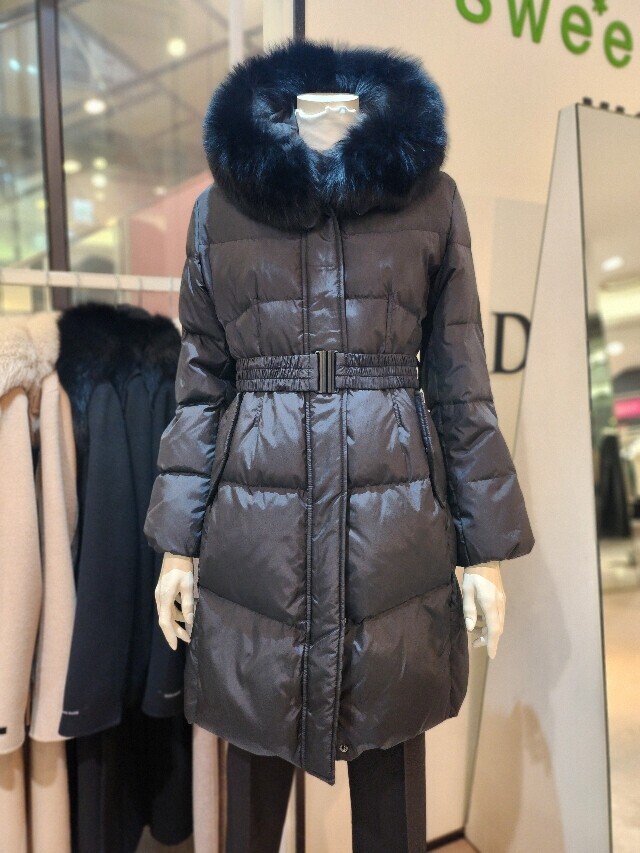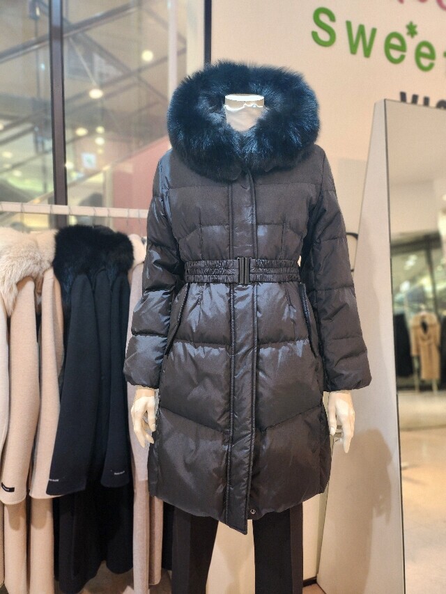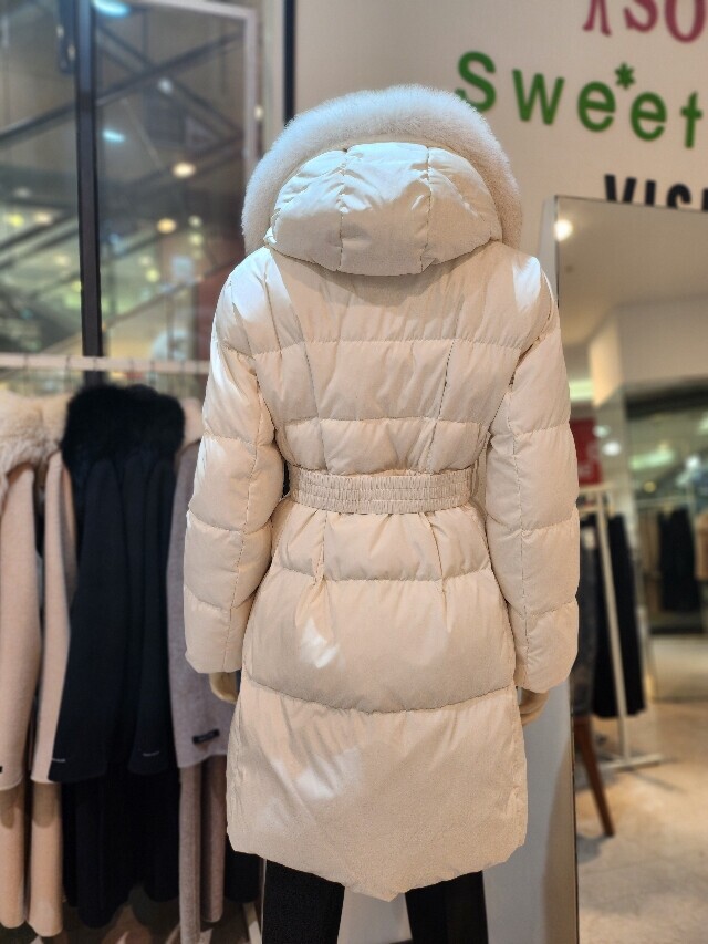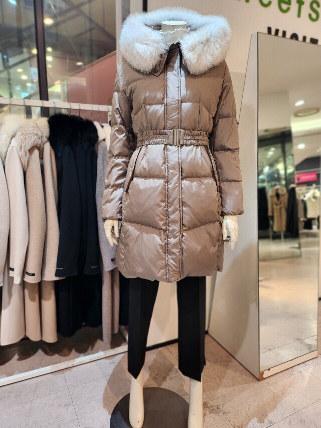 미디기장 폭스 후드오리털 패딩
